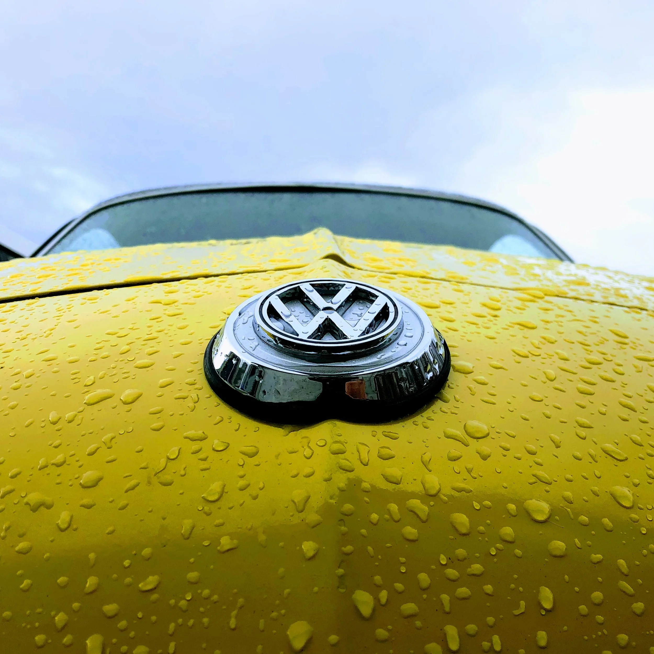 The yellow background is a photo from her Ghia when it rained.