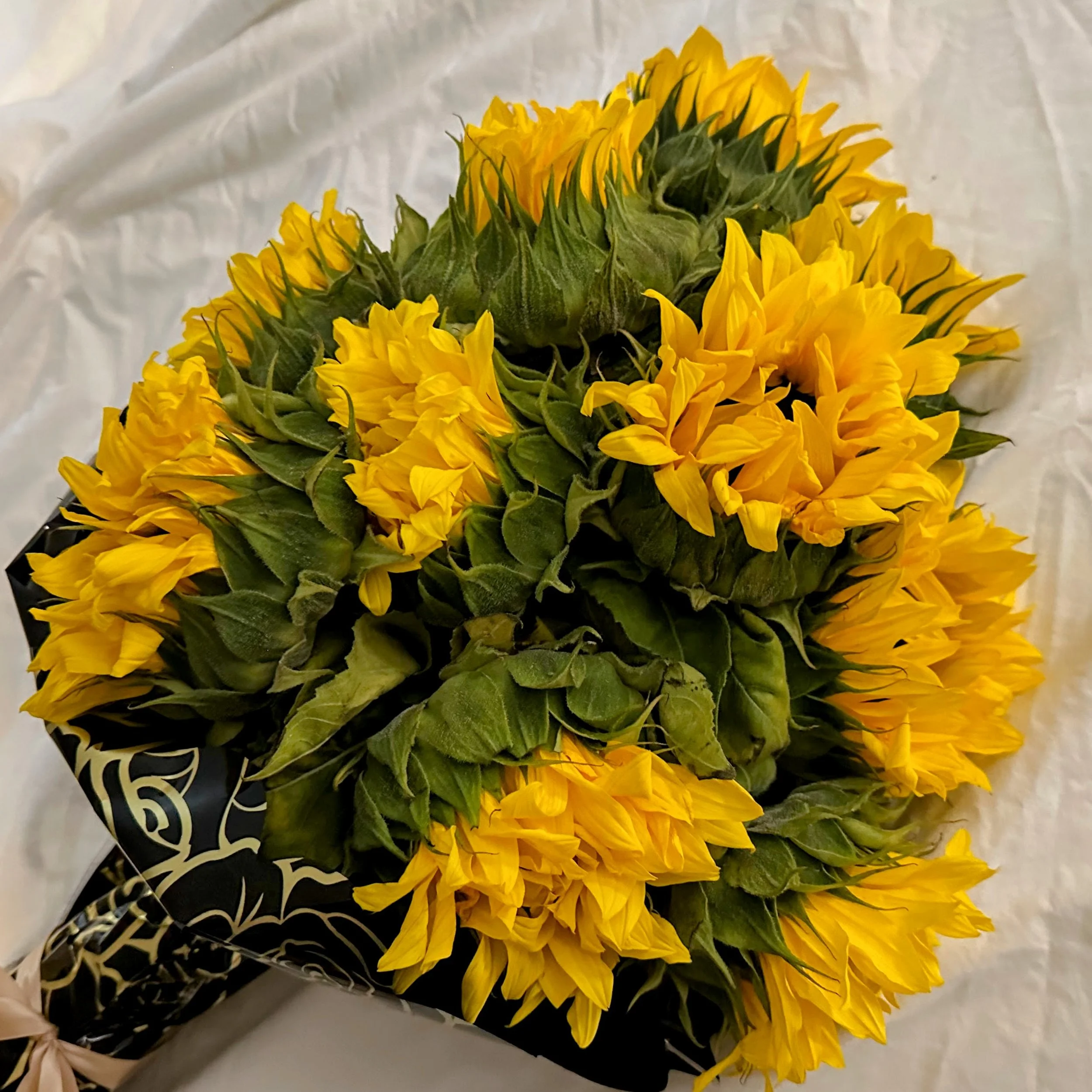 Usually, I always give Kara one red rose (34) for each year we've been married, and one yellow rose for the coming year of friendship. We were friends well before we ever dated, and we've been friends through all the love, arguments, ups and downs. This year, however, we are visiting our daughter and her boyfriend in Los Angeles, where there are many flower street vendors. Kara loves sunflowers, so I got her these.