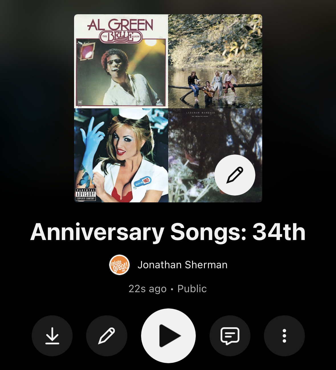 So if you're a romantic sap, like me, then enjoy these gems—some old, some new, some popular, some obscure. And if you like these, look for my prior years' playlists for many, many more: https://relategreat.net/the-anniversary-logos